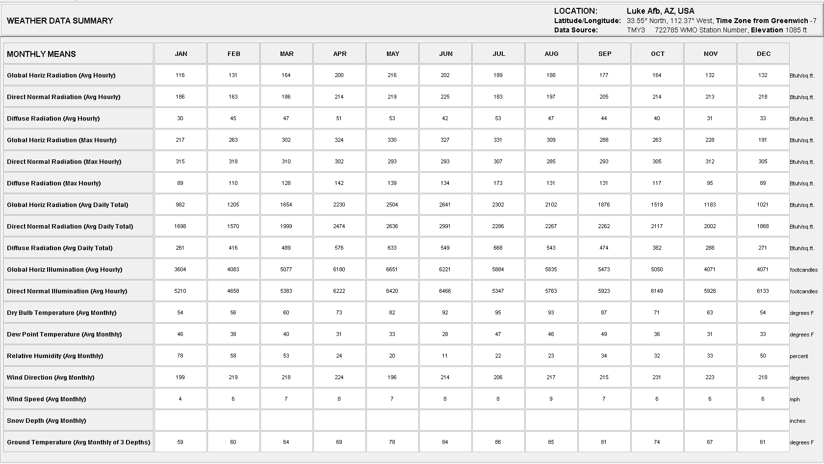 The .epw file is based on Luke Airforce Base which is located approx. 10 miles west of the proposed site location.