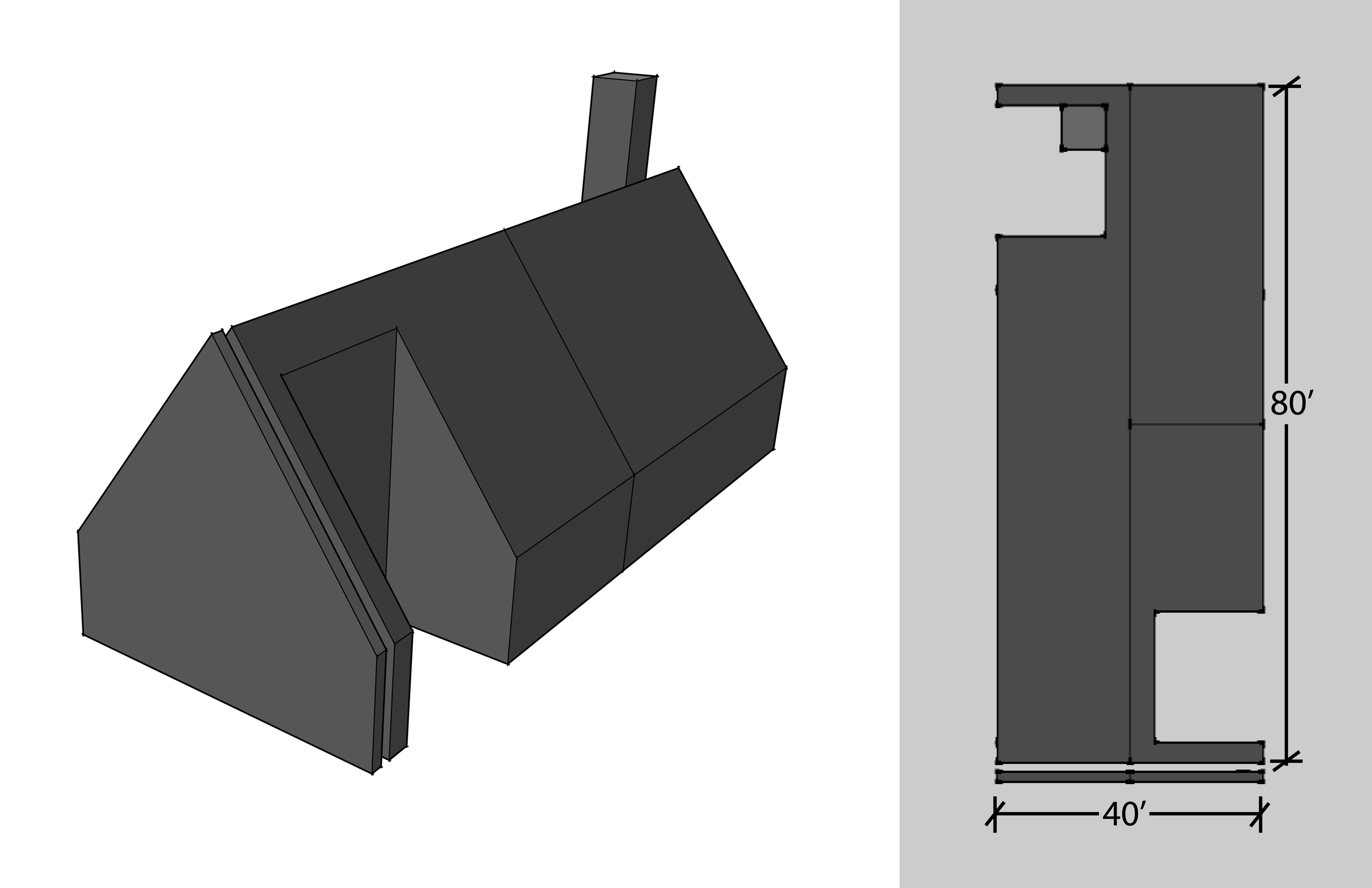 In the endeavor to find a structure to support such a high pitched roof I came upon a system commonly used in Western European churches. The scissor truss in this example has a nominal depth of 6 ft at its highest and tapers to 4ft as the roof slopes to accomodate the angle of the sun. These steel trusses are set 4 ft O.C. and rest upon precast concrete walls. These are not meant to be working drawings but rather diagramatic structural images I will incorporate into the final poster.