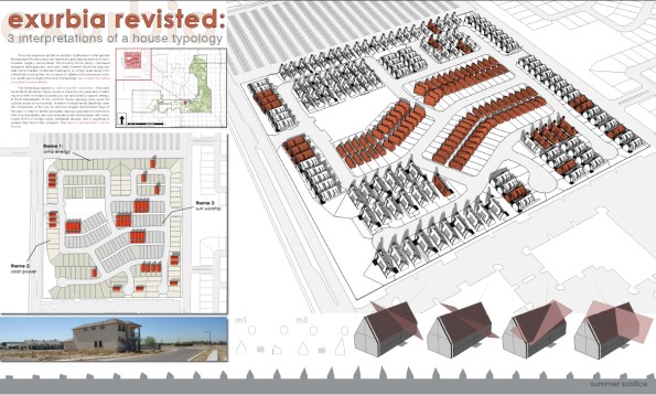 The once explosive growth of exurban subdivisions in the greater Metropolitan Phoenix area has halted abruptly leaving dozens of communities largely uncompleted. Plummeting home prices, continued subprime delinquencies, and tight credit markets have led innumerable home builders to declare bankruptcy or simply ‘walk away’ from unfinished communities. As a means to address this pervasive issue, our studio was assigned the task of proposing new models of exurbia grounded in sustainability.