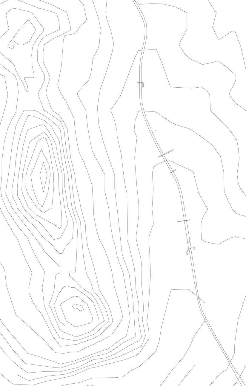 Programatic elements follow a single contour line. Begin and end with canopies over canchas de futbol. Demonstration housing rest atop gabion foundations. Urban agriculture fills the space between north and south hilltop communities while civic operations stitch together the stairways.