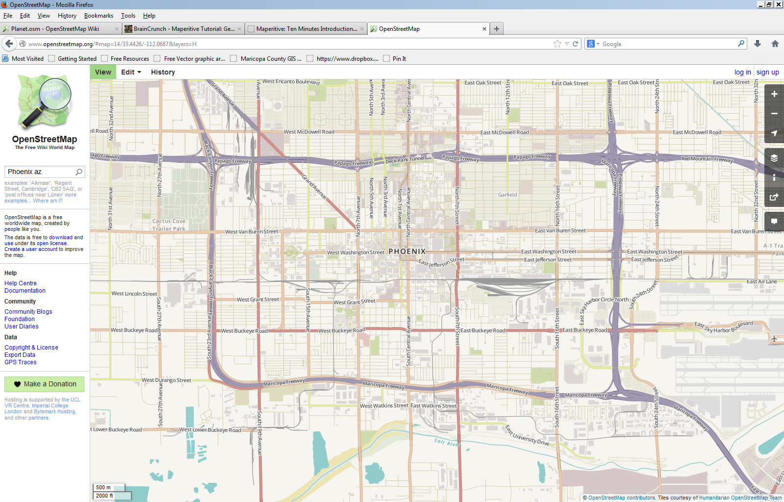 STEP 2. Get Map/Download OSM Data: Visit: http://www.openstreetmap.org/ . Search for a location. I will choose Phoenix, AZ