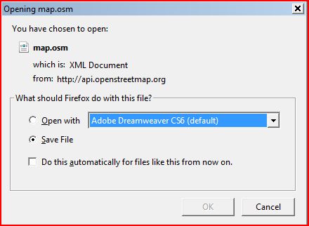 STEP 3. Export Data: Click on Export data on bottom left side of openstreetmap. Save file to desktop. File name is map.osm.